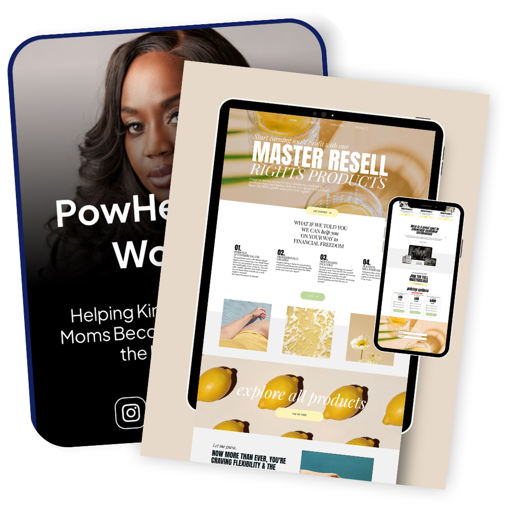 12 Months Access to the House of Her Membership for networking opportunities and even more resources. We're talking PLR products ready for you to modify and monetize right away, templates, masterclasses, trainings, digital marketing courses, community events, and MORE!!!